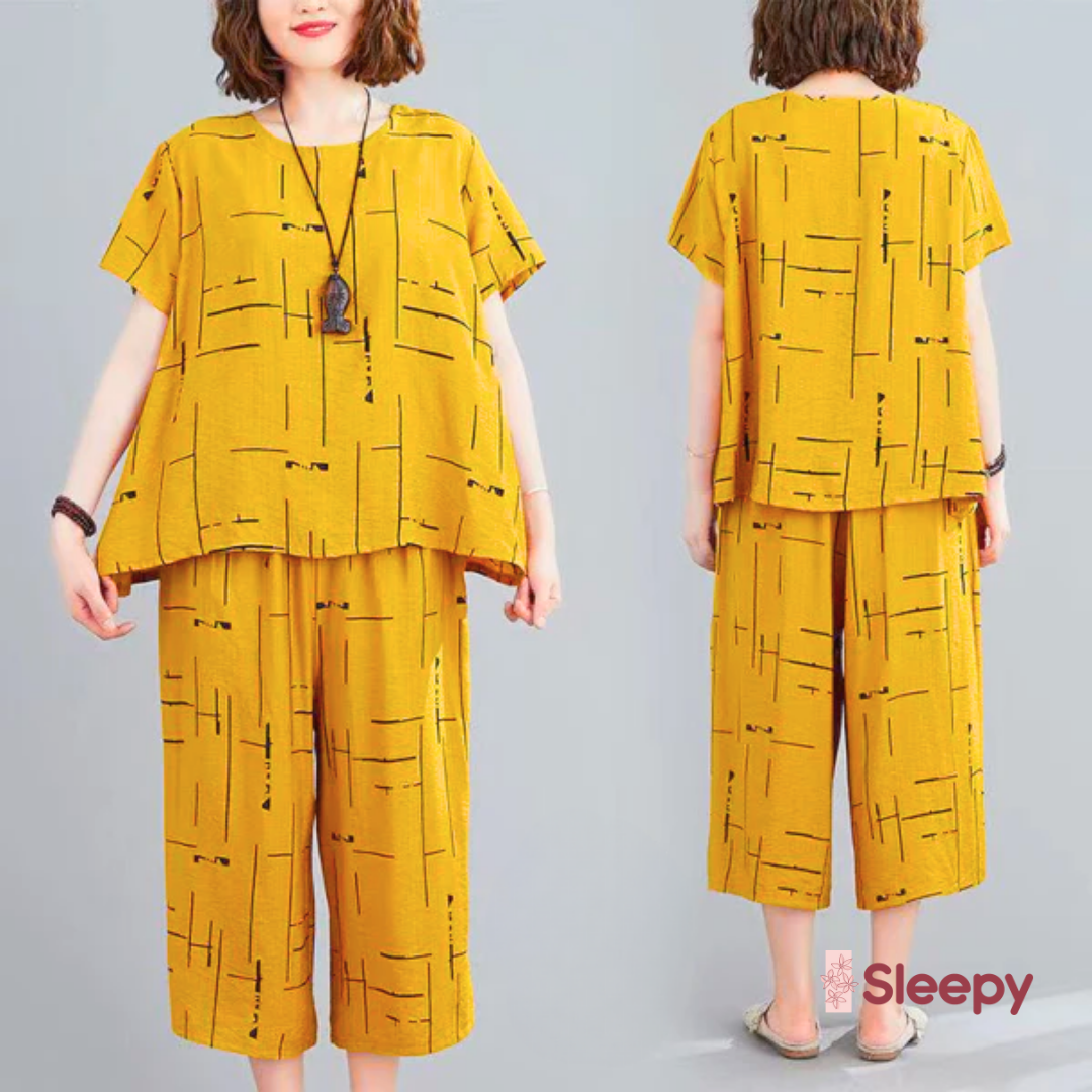 - Loose-fitting capri trousers made with stretchable fabric for extra comfort