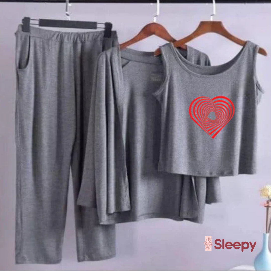 Upgrade your loungewear collection with this stylish 3-piece night suit set, featuring a long-sleeve top, vest, and loose trousers. Designed with comfort and elegance in mind, it’s the perfect choice for cozy nights and relaxed mornings.