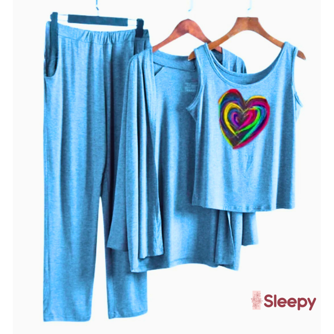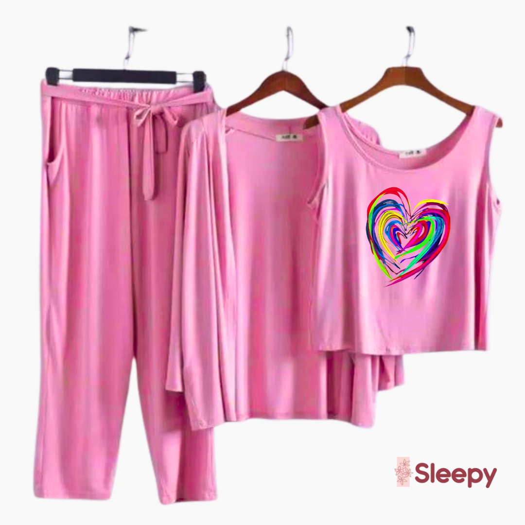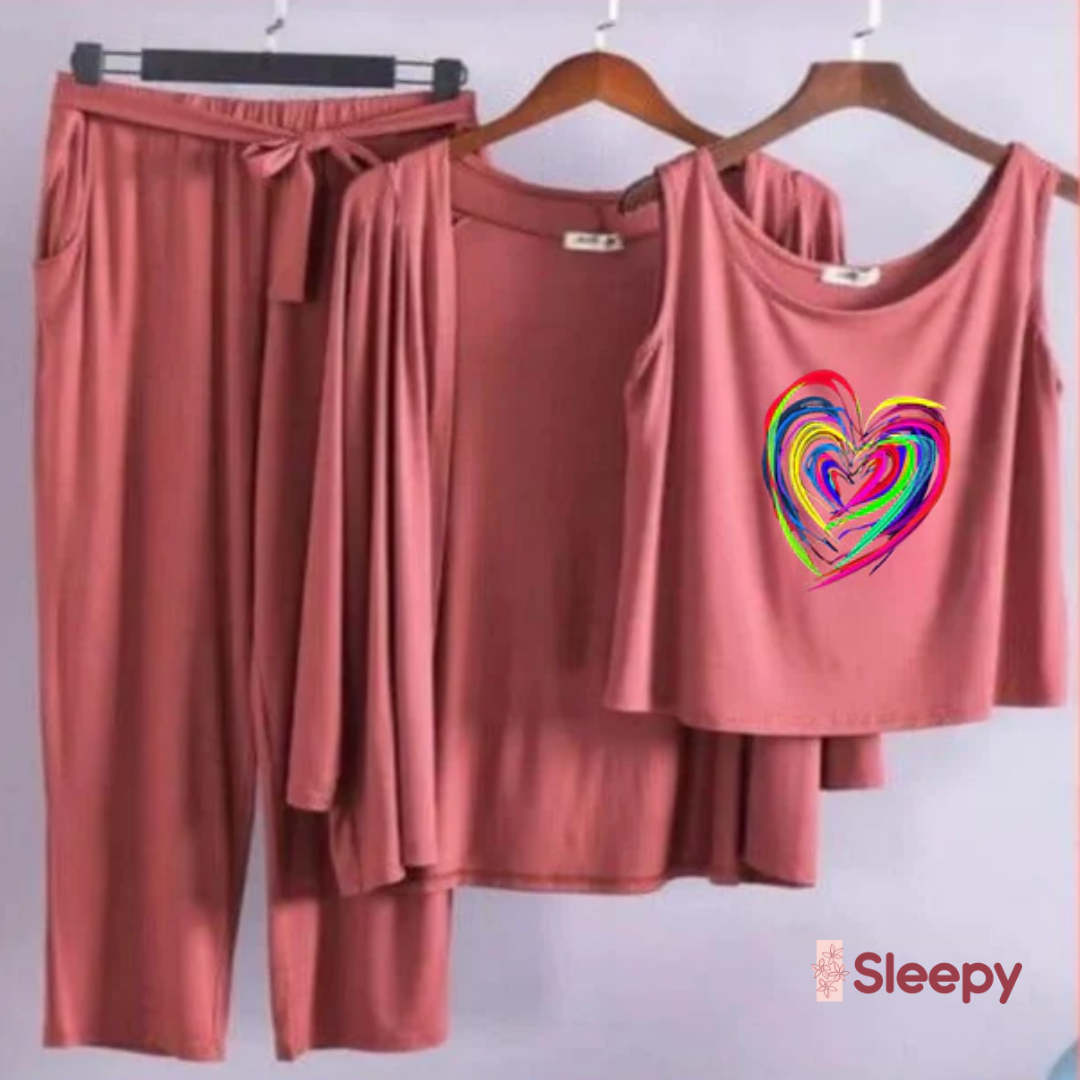 Upgrade your loungewear collection with this stylish 3-piece night suit set, featuring a long-sleeve top, vest, and loose trousers. Designed with comfort and elegance in mind, it’s the perfect choice for cozy nights and relaxed mornings.
